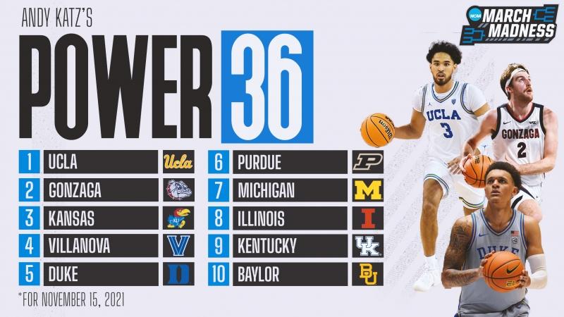 March Madness correspondent Andy Katz released his first in-season Power 36 rankings on Monday, Nov. 15, and the UCLA Bruins check in at No. 1.