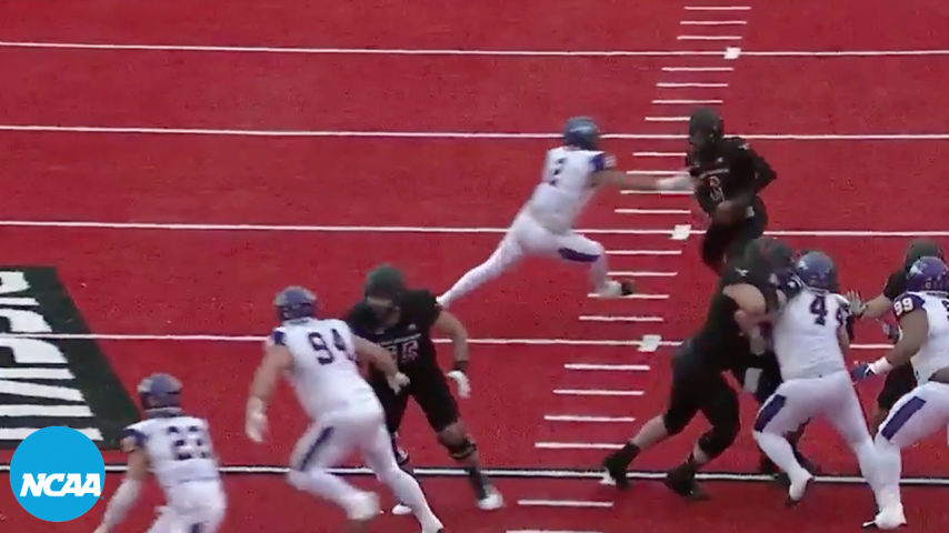 In the first round of the FCS playoffs, Eric Barriere drove the ball into Northern Iowa territory. As Barriere dropped back to pass, he evaded a would-be sack before taking off down field. What happened next was spectacular.