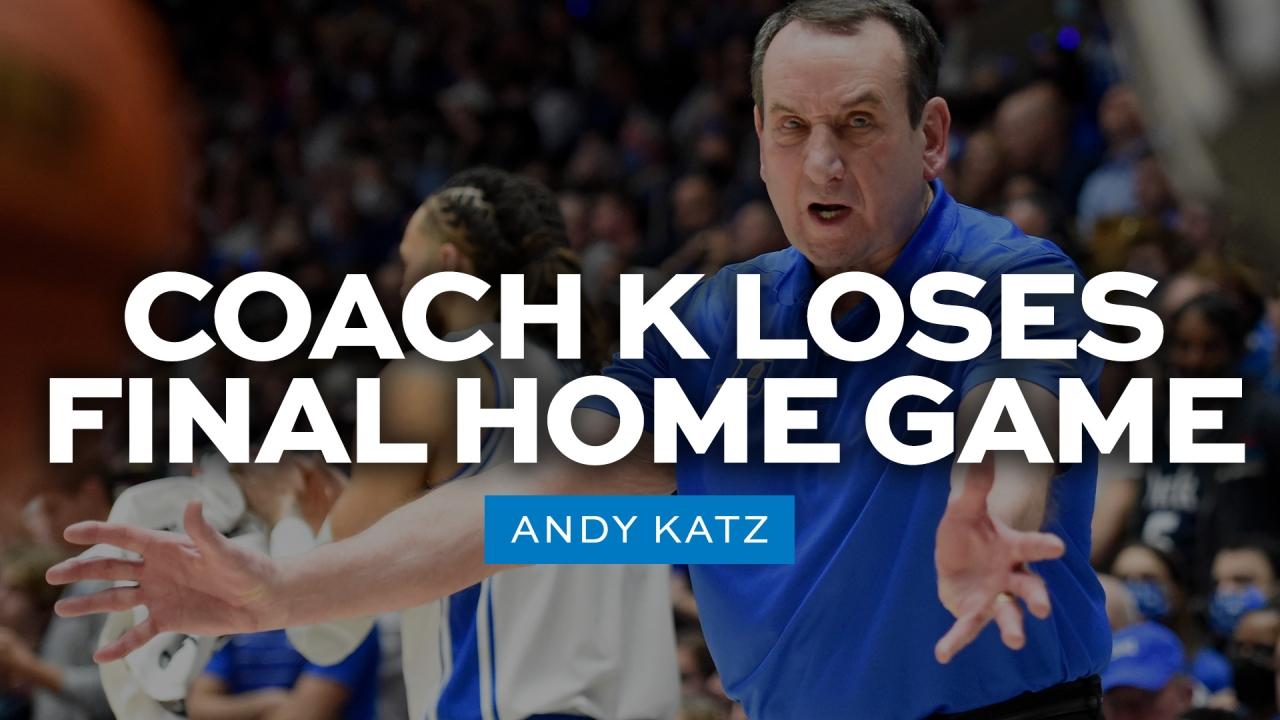 With Coach K's home finale entering the home stretch, rival North Carolina has taken a 65-61 lead thanks to a 9-0 run that started with a 3-pointer from Caleb Love and ended with Brady Manek getting an offensive board and bucket after Duke center Mark Williams was called with goaltending.