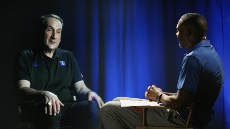 For the final time in his 42-season tenure at Duke, Mike Krzyzewski takes the sideline inside Cameron Indoor Stadium, as No. 4 Duke (26-4, 16-3 ACC) hosts rival North Carolina (22-8, 14-5) in both schools' regular-season finale. The game, which follows a pregame ceremony in which Krzyzewski was joined on the floor by dozens of his former players, is now underway on ESPN2, after the game between Kansas and Texas went into overtime on ESPN.