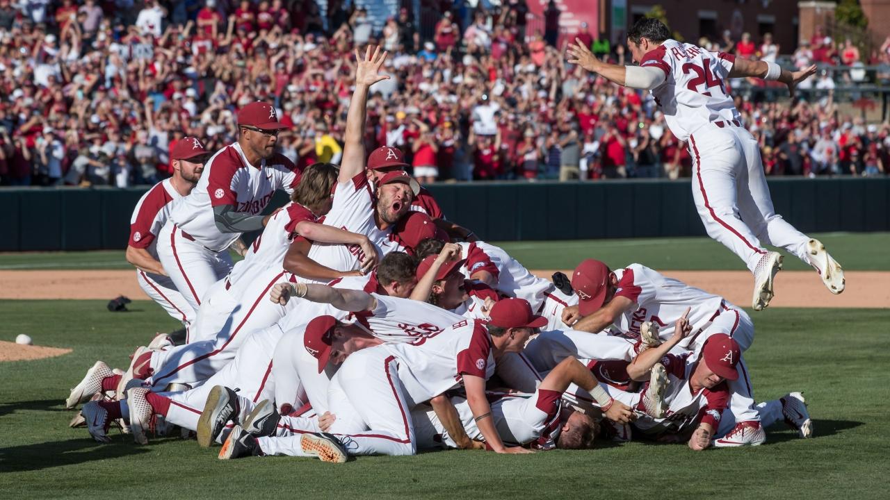 How it happened: Arkansas' three-game sweep against Mississippi State is one of the most impressive stretches of baseball you'll see. The Razorbacks outscored the Bulldogs 27-10 in the series topped 10 runs twice. Shortstop Casey Martin went 2-for-3 with three walks and four RBIs in the final game of the set.