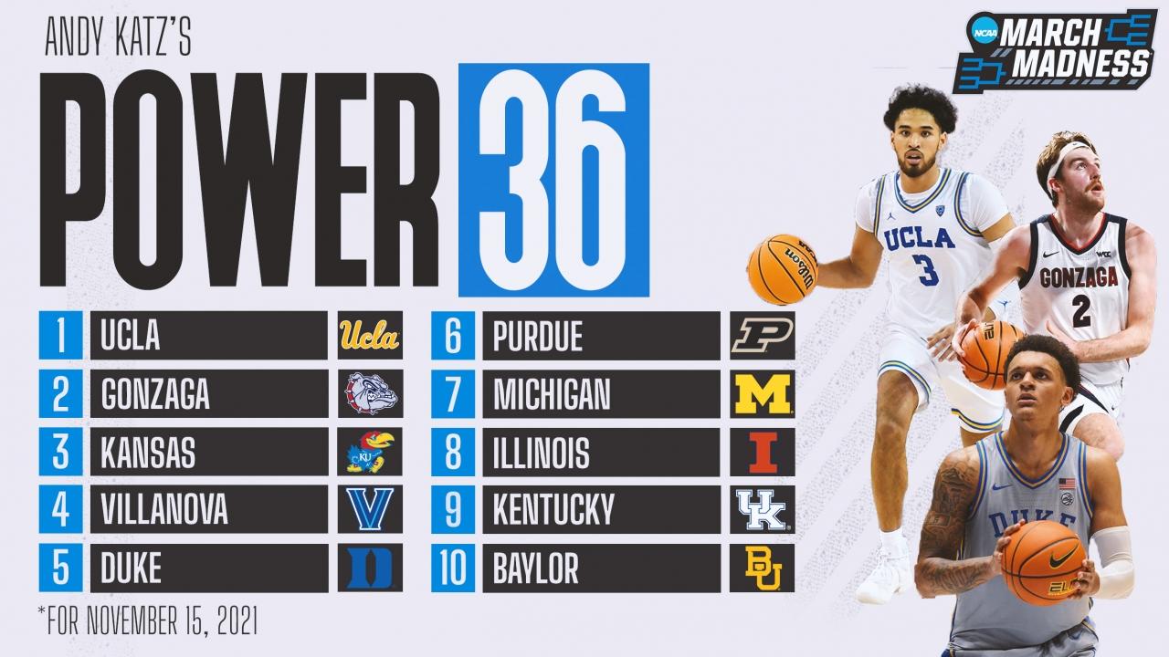 The first Power 36 rankings of the men's college basketball season has arrived. Keep in mind this is a report on the previous week. These are not seedings. Seedings take into account the entire season.