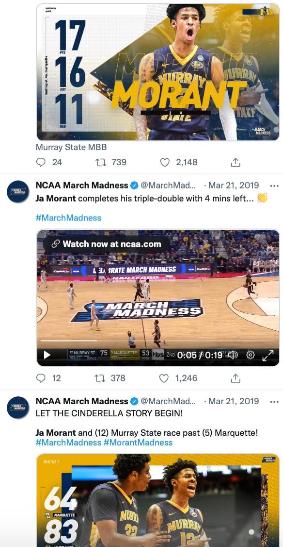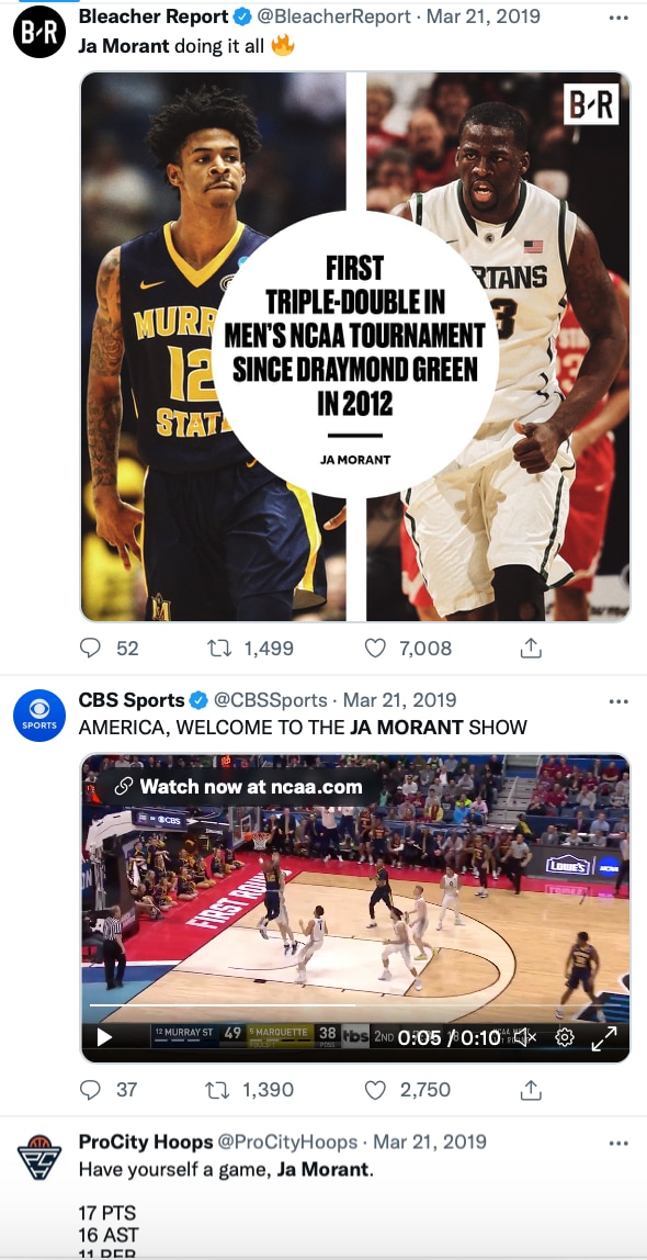 This was not the "where did this kid come from?" March Madness story authored by Steph Curry and Davidson in 2008. Because of social media, a majority of college basketball fans already knew of Morant, and a good portion of them knew he was really good and really fun. Now to be fair, had Twitter and Instagram been around in 2008, Curry would have been in that same realm.