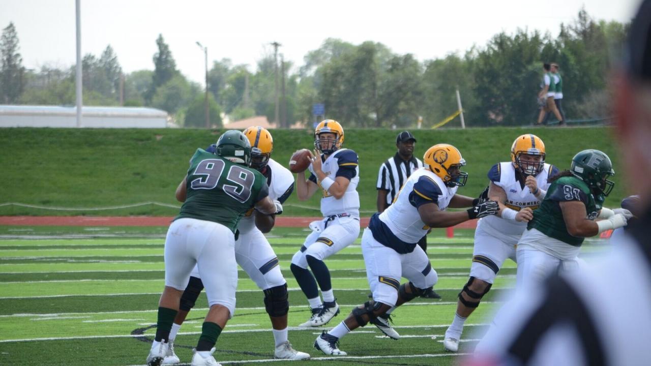 "I ended up winning the second-string spot. And then the starter goes down in Week 4 or 5. I go in there and throw two touchdowns in the second half and we end up winning. I started the week after that, threw for three touchdowns and ran for one. Three games after that, I break my leg. I was devastated, I was so close to where I wanted to be. But then I ended up beating out the San Diego player of the year my sophomore year. I started, but we both played a lot. Then A&M-Commerce called me up. It was a no-brainer for me."