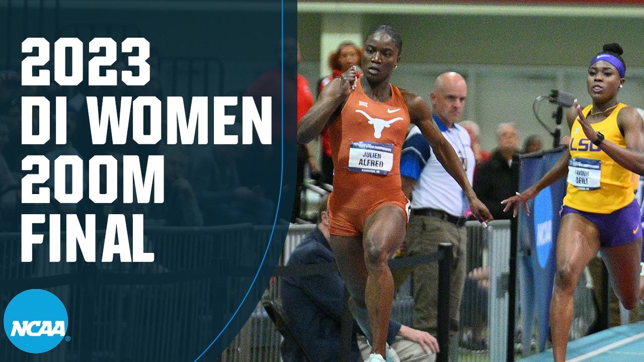 The 60 meter record fell yet again as Julien Alfred ran 6.94 seconds to win the 2023 DI indoor title. She wasn't done with just the 60; she broke the 200 meter record in 22.01 seconds to win the 2023 DI indoor title.